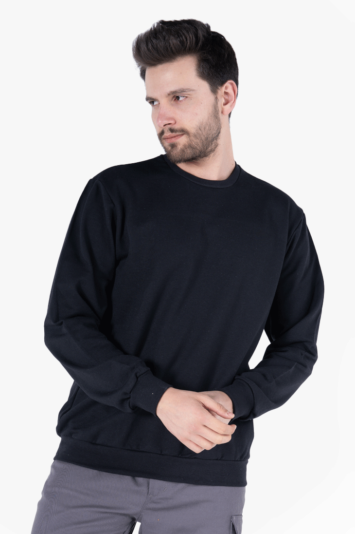 2 İplik Bisiklet Yaka Sweatshirt - Siyah