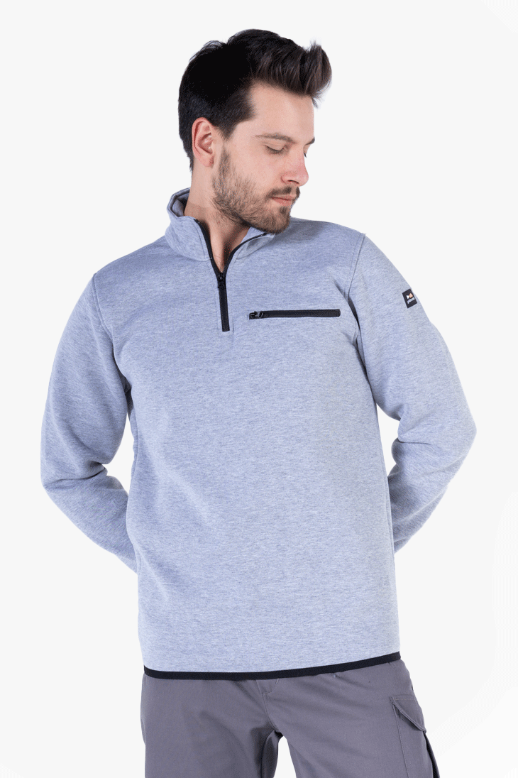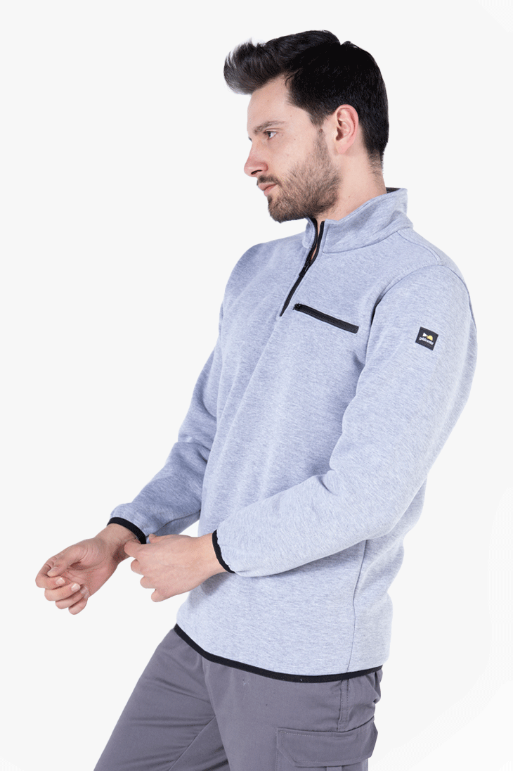 3 İplik Dik Yakalı Fermuarlı Sweatshirt - Gri Melanj