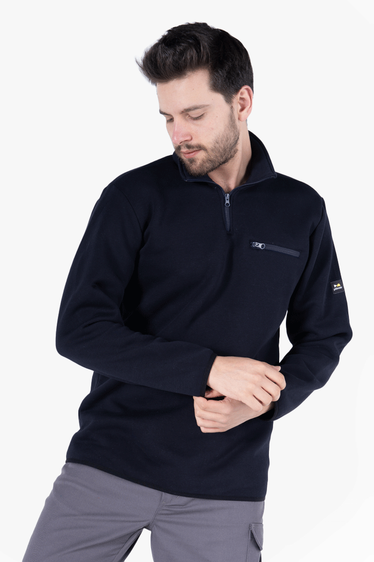 3 İplik Dik Yakalı Fermuarlı Sweatshirt - Lacivert