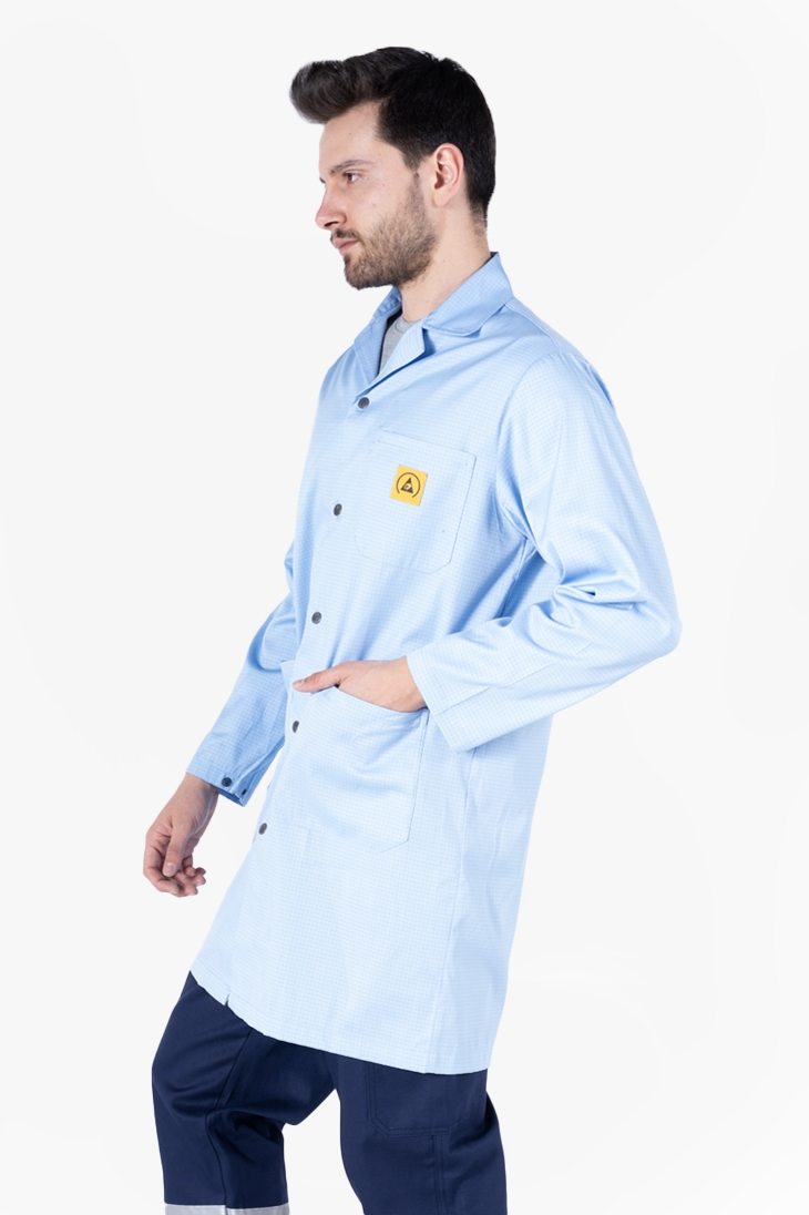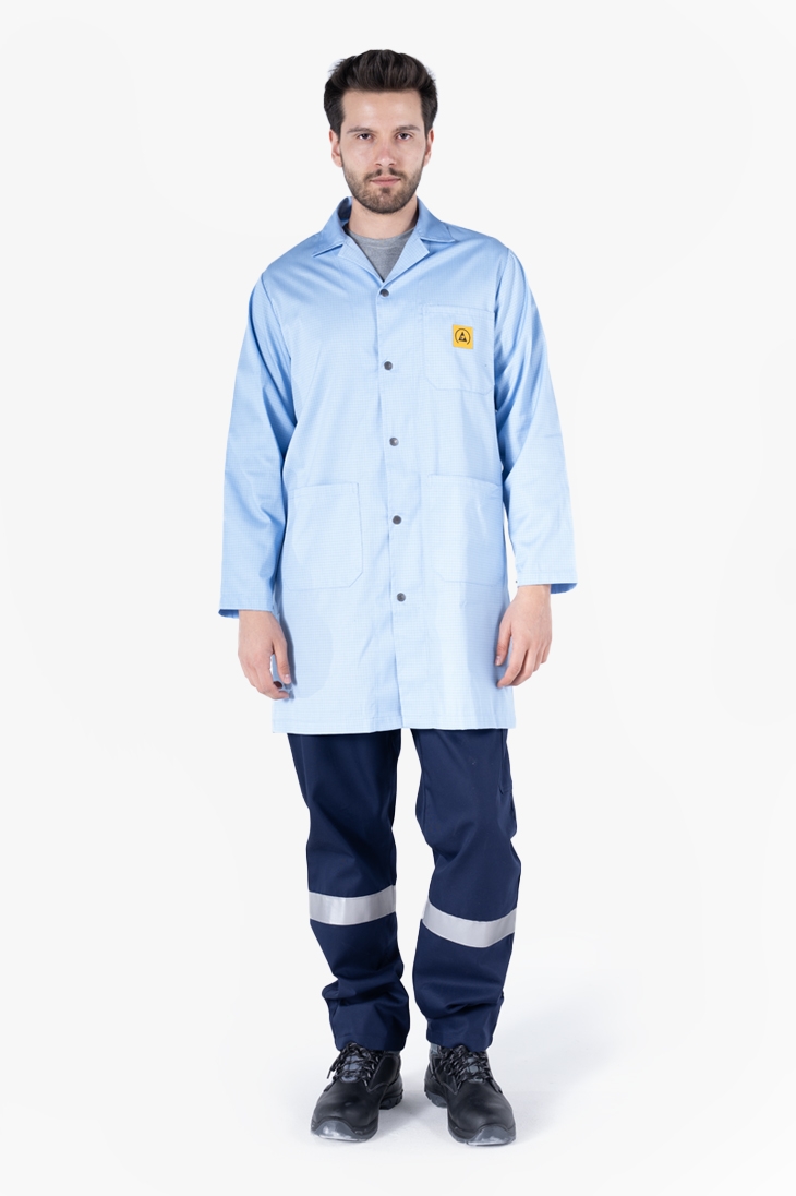 Yüksek güvenlik standartlarına sahip iş kıyafetlerimizden biri olan Blocer ESD Önlük, laboratuvar ve elektronik üretim tesislerinde çalışırken statik elektrikten korunmanızı sağlar.