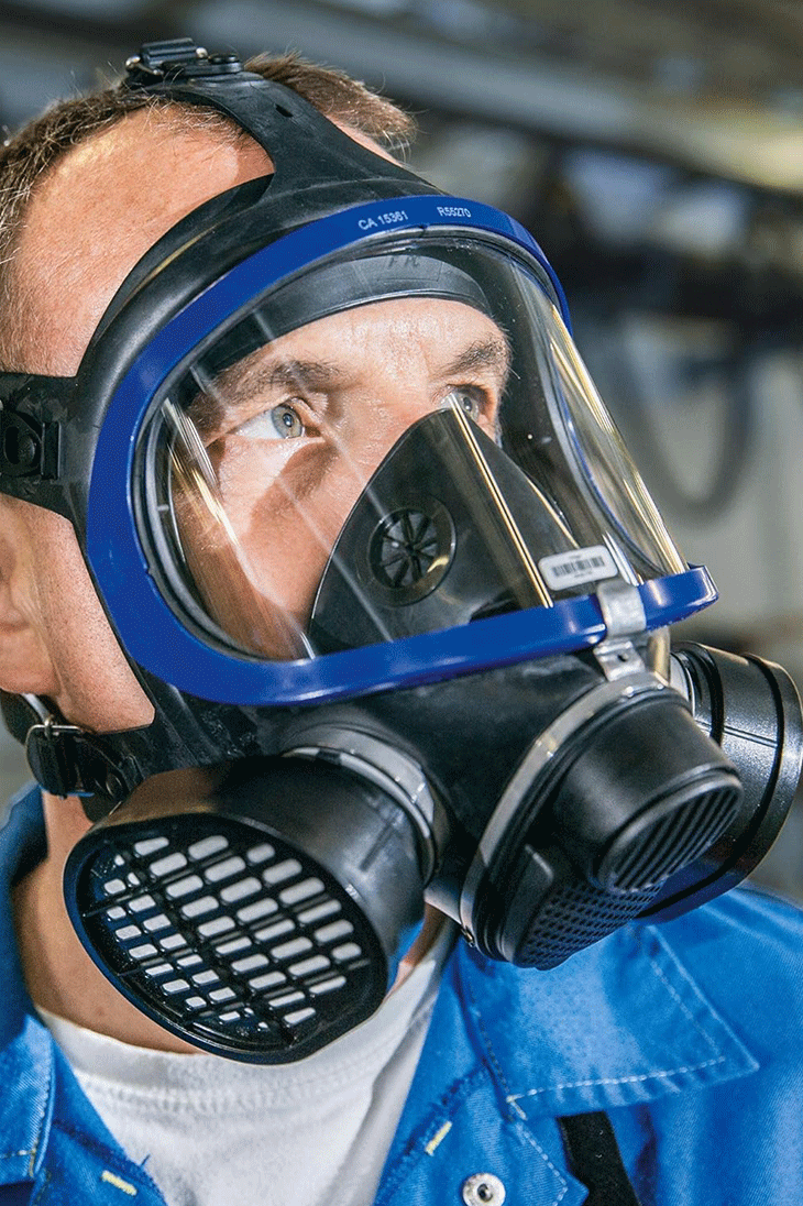 Çift Filtreli Tam Yüz Maskesi, güvenli ve konforlu kullanım için tasarlanmıştır. EPDM polikarbonat vizörü, geniş görüş açısı sağlar ve güvenlik gözlükleri ile uyumludur. 540 gram ağırlığındadır, baş bandı ile kafaya optimum şekilde oturur.