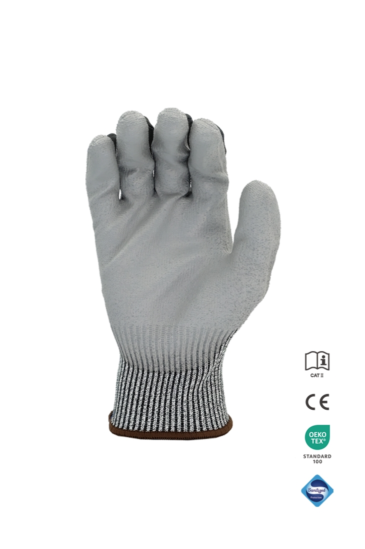 • 13G gri HPPE/çelik iplik astar, Kesilme Seviyesi D koruması sağlar