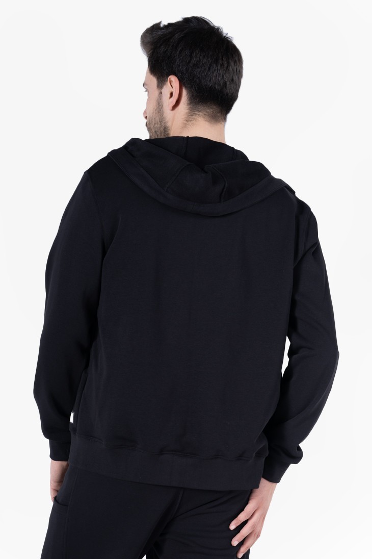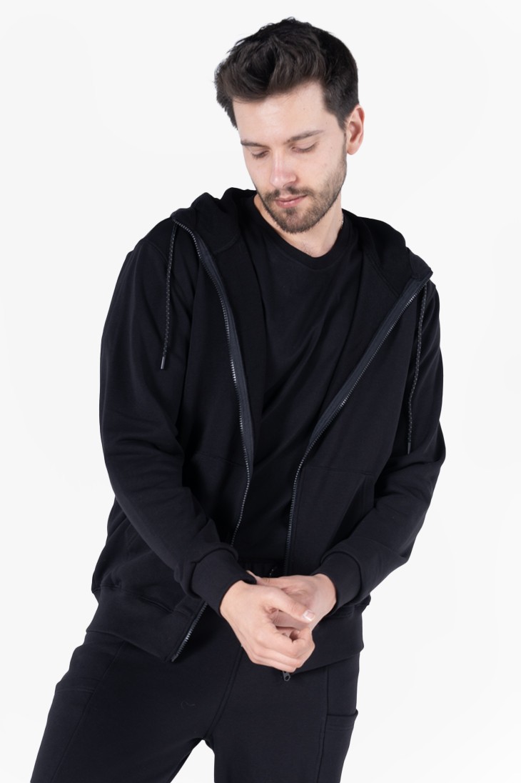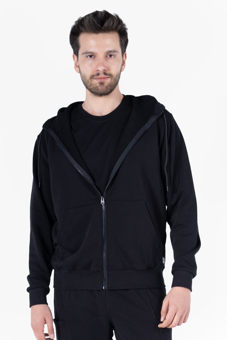 Diagonel Kapüşonlu Fermuarlı Sweatshirt - Siyah