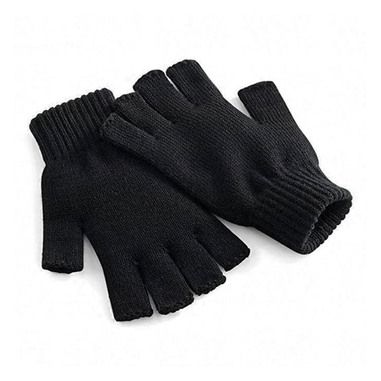 Eldiven Tekstil Yün Örme Yarım Parmak - Siyah