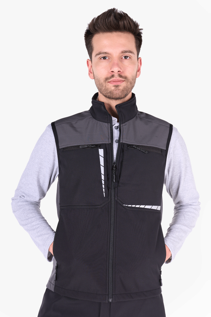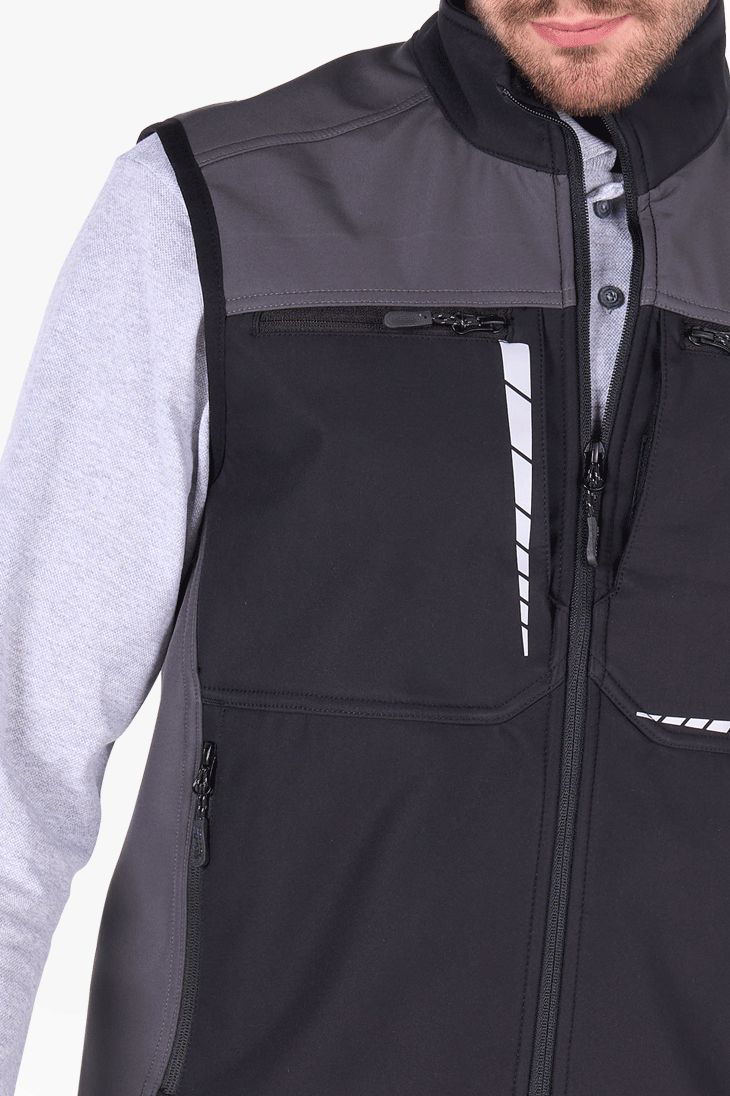 Softshell Reflektörlü Yelek - Siyah - Gri