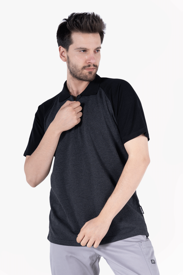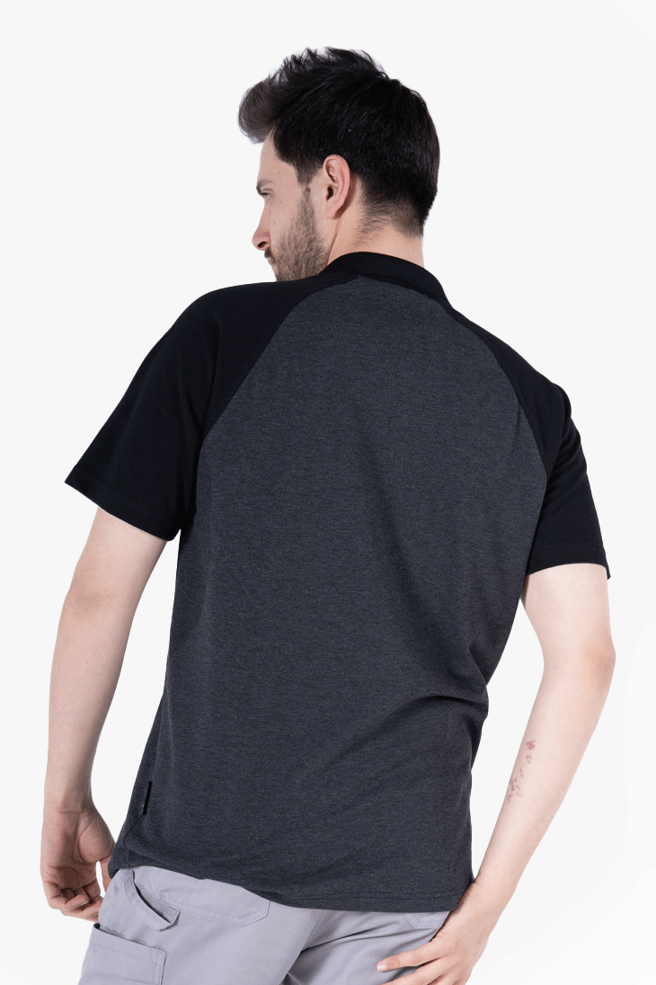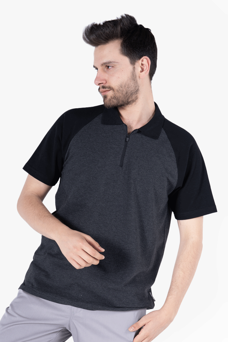 Polo Yaka Fermuarlı T-Shirt - Antrasit Gri - Siyah