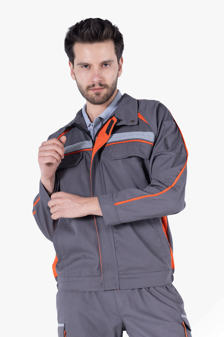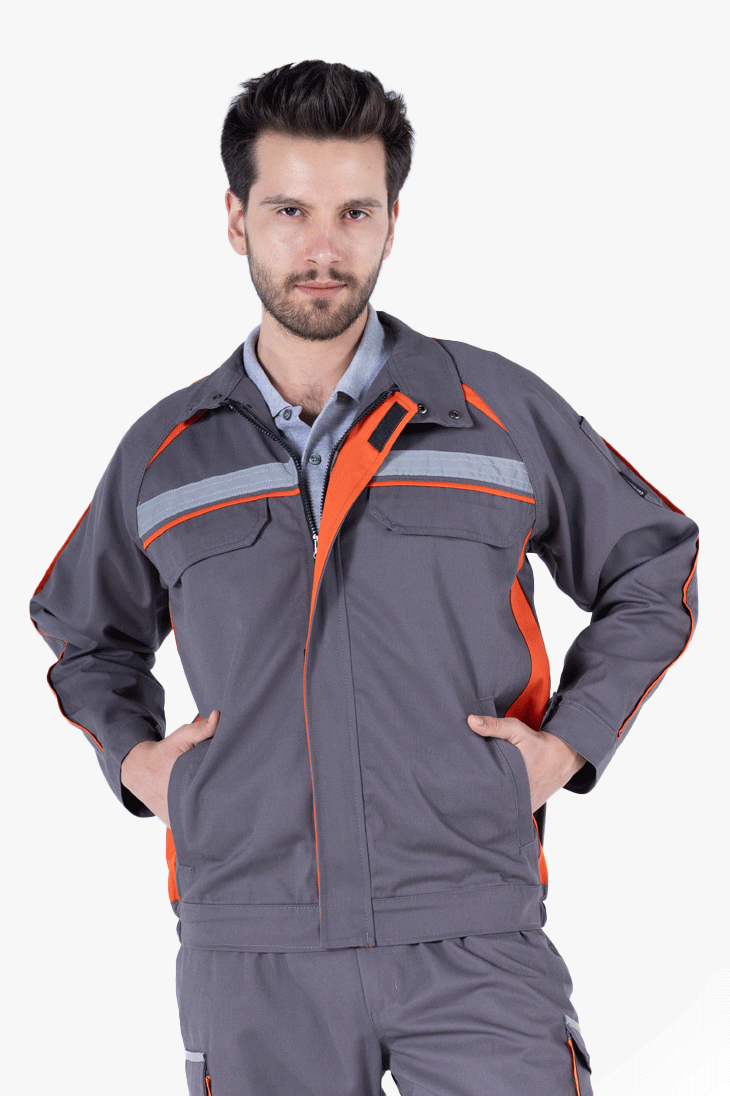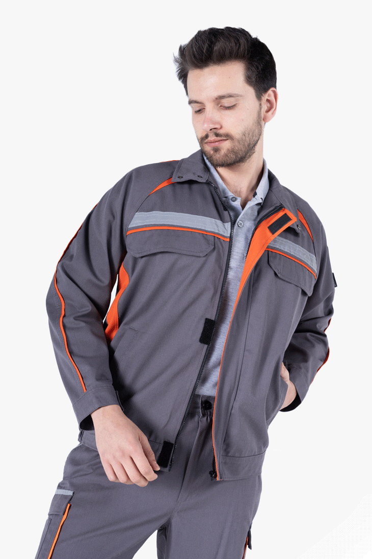 Turuncu Biyeli Reflektörlü Mont - Gri - Turuncu