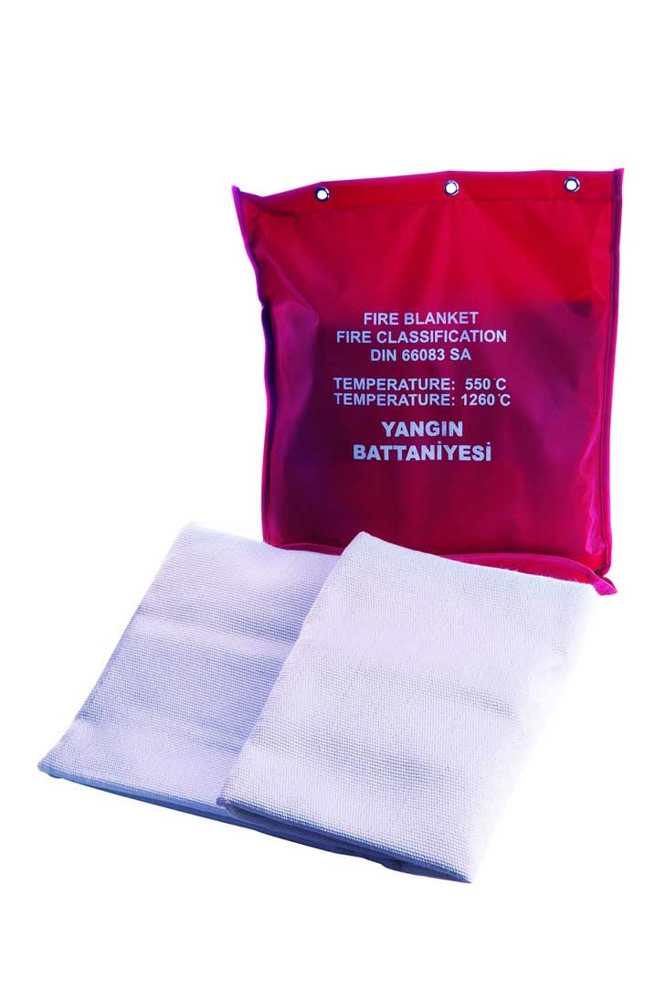 • Yangın başlangıcında alevin üzerine atılarak söndürülmesinde, yangında mahsur kalan insanların sarınarak yangın ortamından uzaklaştırılmasında ve yangından kurtarılması gereken ekipman ve malzemelerin tahliyesinde kullanılmak üzere tasarlanmış ve üretilmiş yangın battaniyesi.